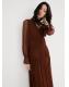 Diseño midi. Diseño recto. Tejido de gasa. Cuello alto. Manga larga con puños elásticos. Forro interior. Cierre de cremallera en la parte posterior