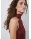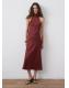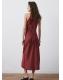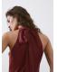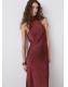 Diseño largo. Diseño recto. Cuello halter. Sin mangas. Cierre de lazo en el cuello. Esta prenda pertenece a nuestra colección de fiesta y evento, diseñada para elevar tus looks en ocasiones especiales. El color burdeos es exclusivo online
