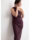 Tejido mezcla de lino y lyocell. Tejido fluido. Diseño largo. Diseño asimétrico. Diseño entallado. Tirante ancho. Hombro descubierto. Cierre cremallera invisible en el lateral. Abertura latera en el bajo. Detalle fruncido. Disponible Plus. El color marrón es exclusivo online