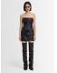 皮革无肩带迷你连衣裙