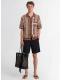Knitted cotton blend short sleeve shirt - 巧克力色 - 男士 - Laneus - Front button closure.