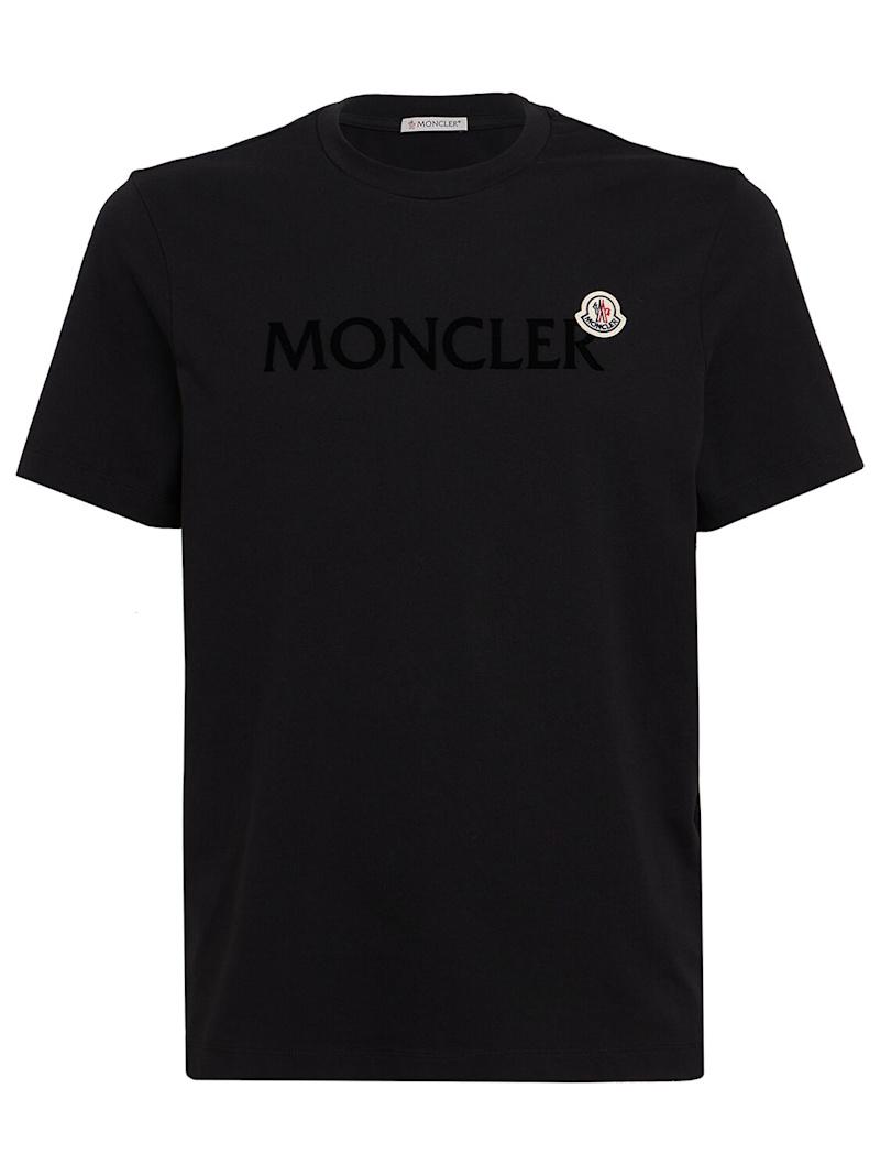 Flocked logo cotton t-shirt - 黑色 - 男士 - Moncler - Crafted from cotton jersey.