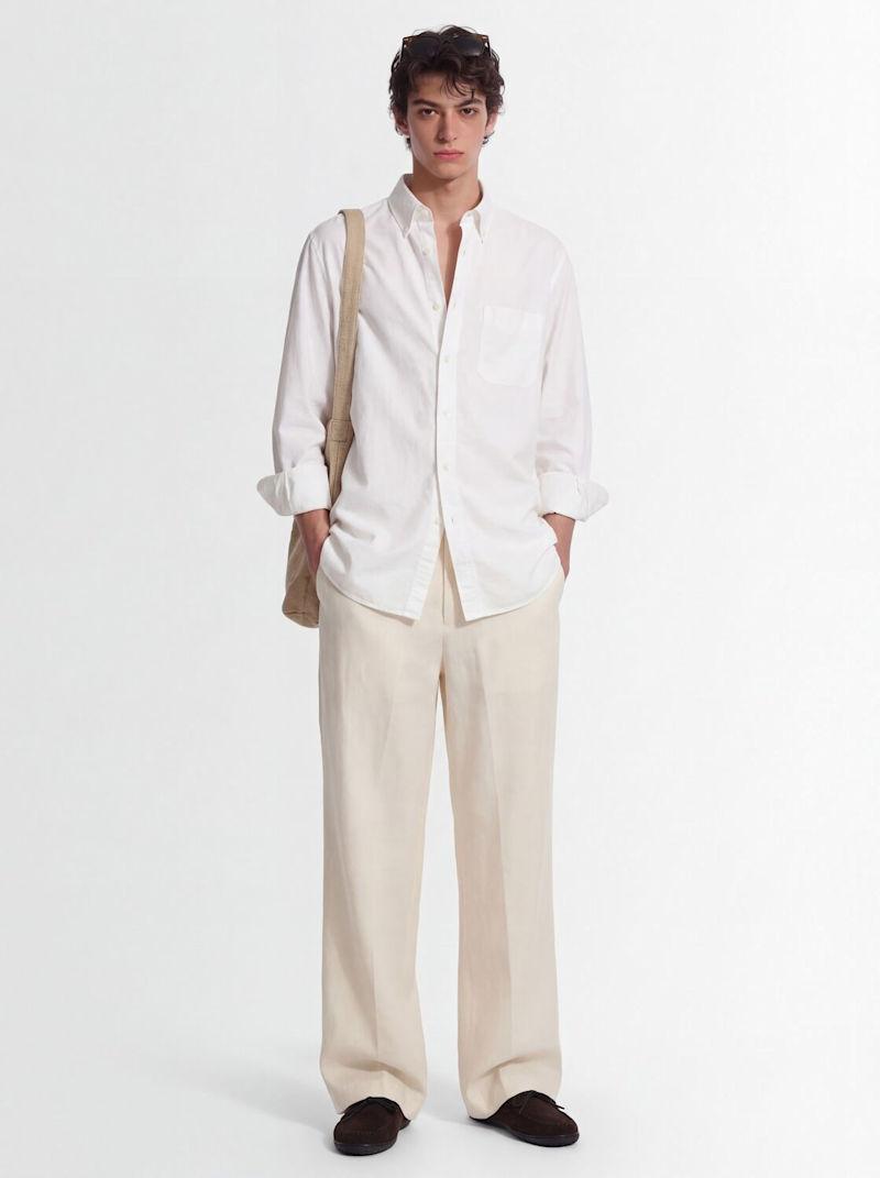 Viscose & linen pants - 黑色 - 男士 - Laneus - Front button and concealed zip closure.
