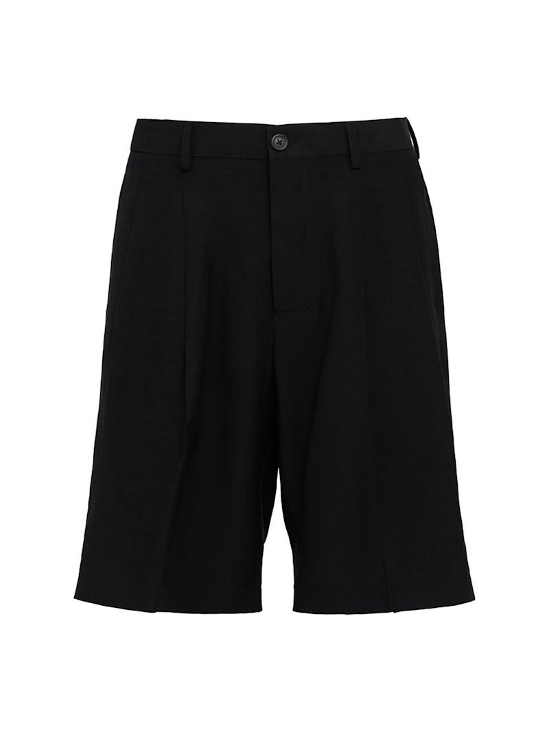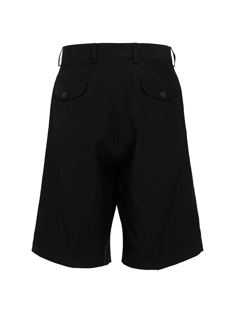 Viscose & linen shorts - 黑色 - 男士 - Laneus - Front button and concealed zip closure.