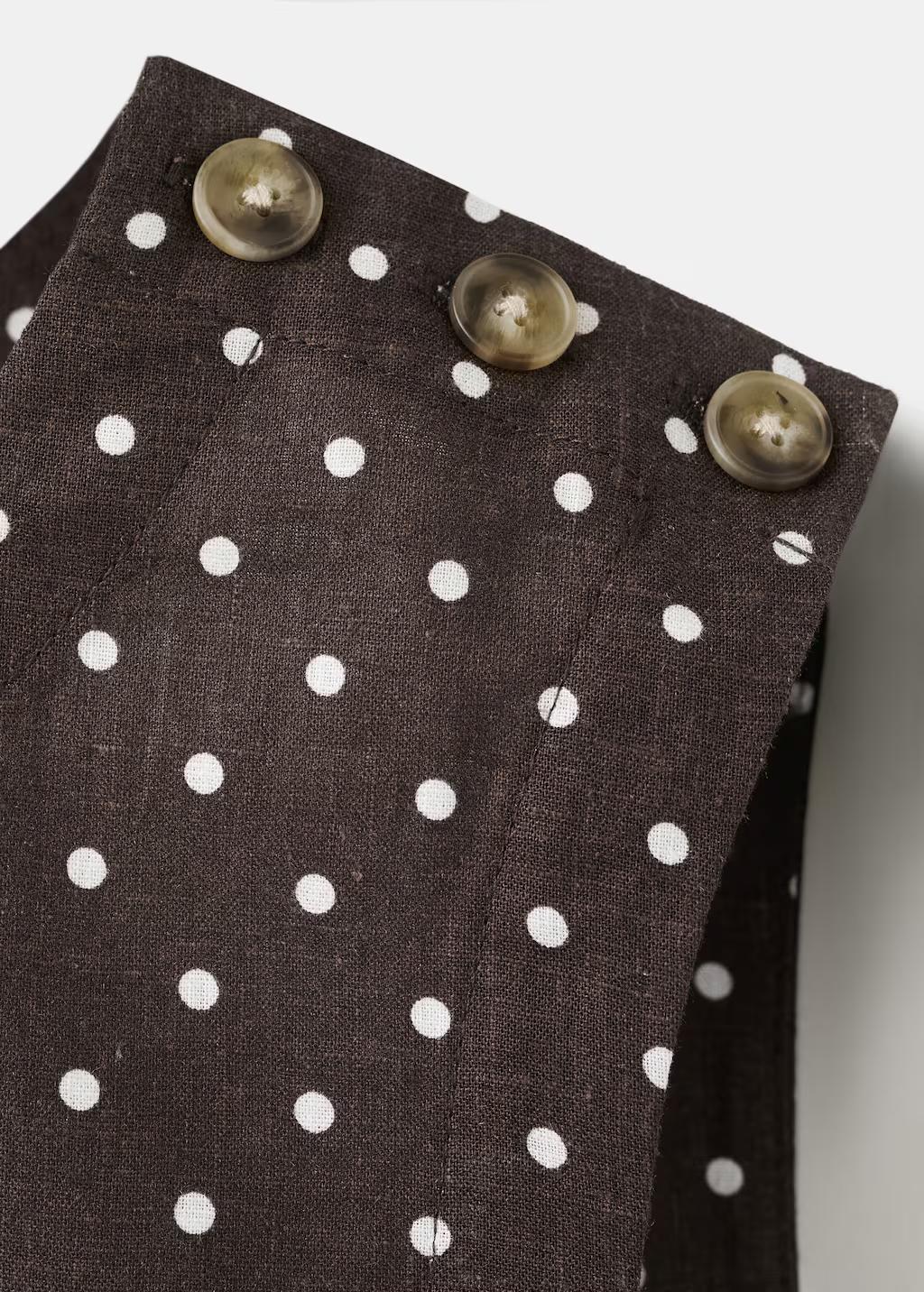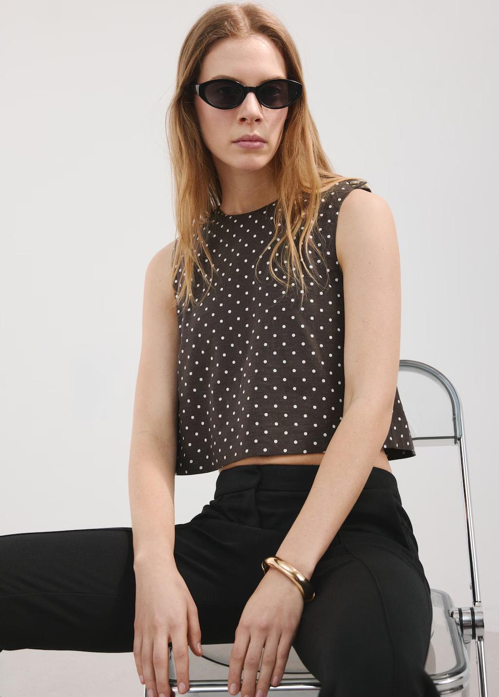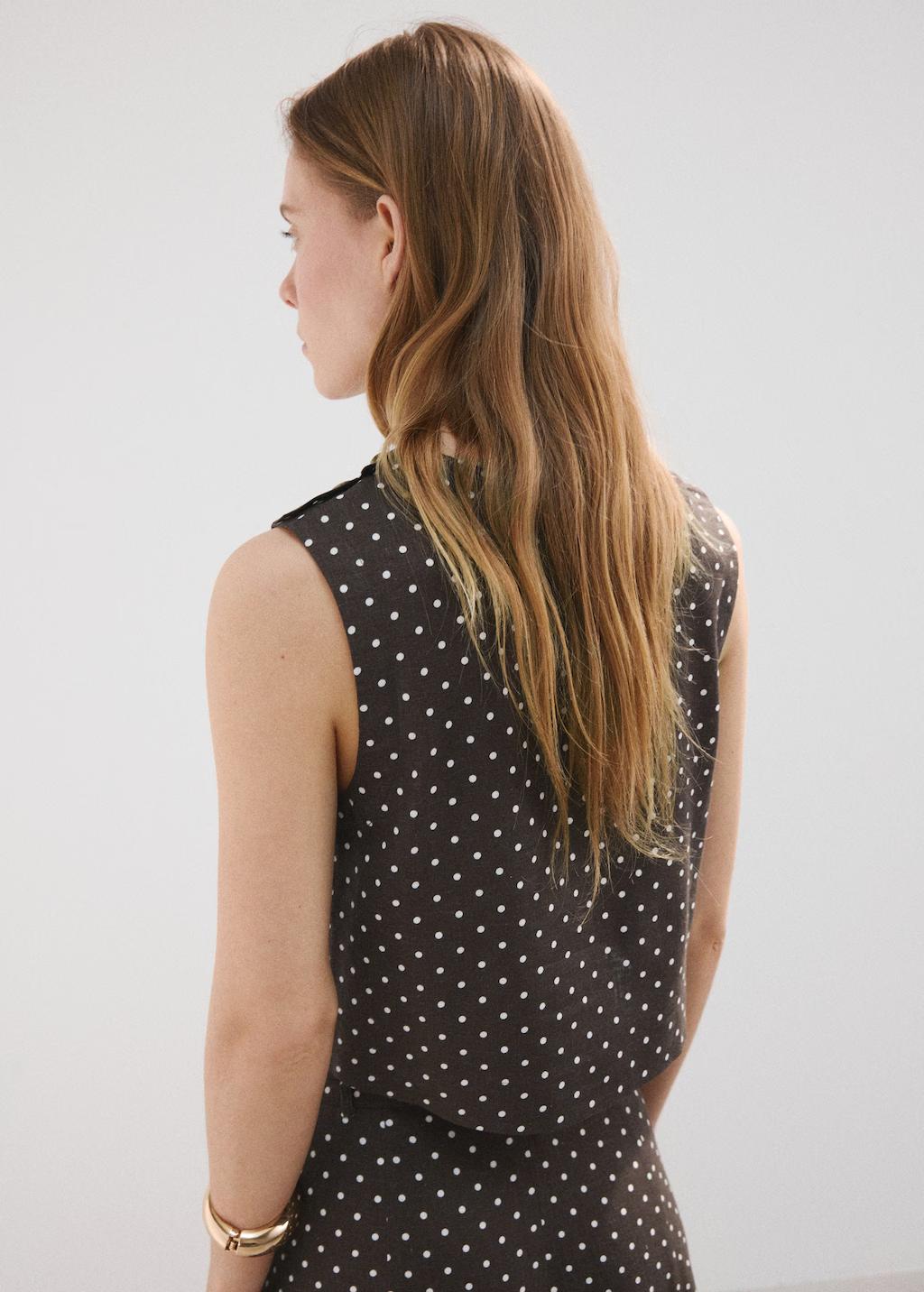 Tejido mezcla de lino. Diseño recto. Diseño crop. Estampado de lunares. Cuello redondo. Sin mangas. Tirantes anchos. Cierre de botones en el hombro. Total look