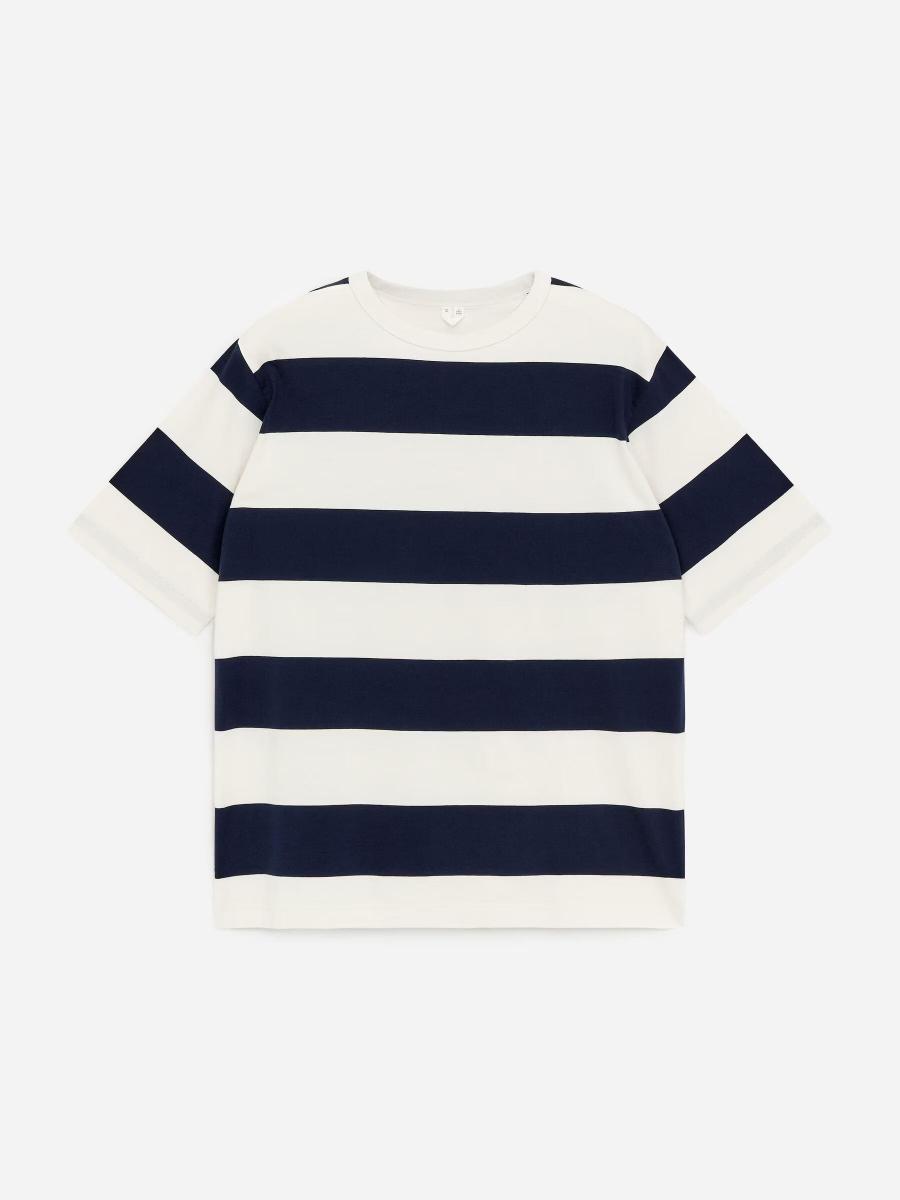 Cut for a relaxed fit, this short-sleeve T-shirt is crafted from soft cotton jersey with a pattern of yarn-dyed stripes. Made from 220 GSM single jersey, and finished with 1x1 rib at the neck.ARKET/Men's clothes/Men's new arrivals