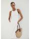Tamaño mediano. Tejido de fibra natural. Doble asa. Dos asas de hombro. Bolso pequeño interior de tela. 50.0x26.0x14.0 cm (Largo x Alto x Ancho)