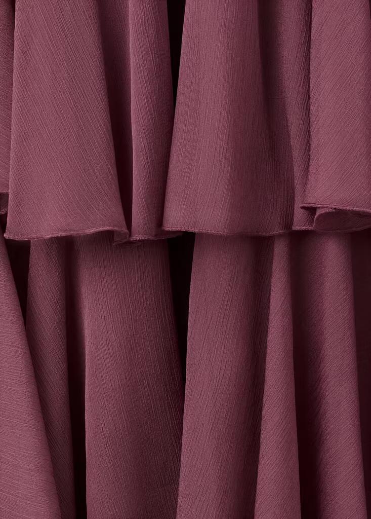 Diseño corto. Detalle de volante. Tirante ancho. Cierre de cremallera