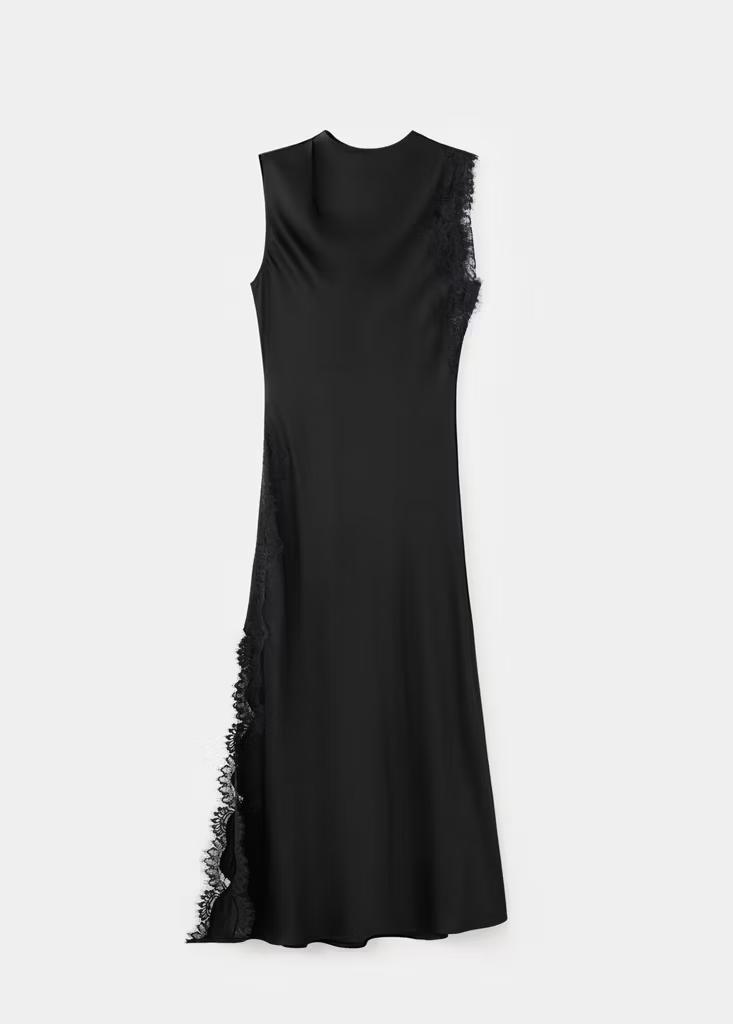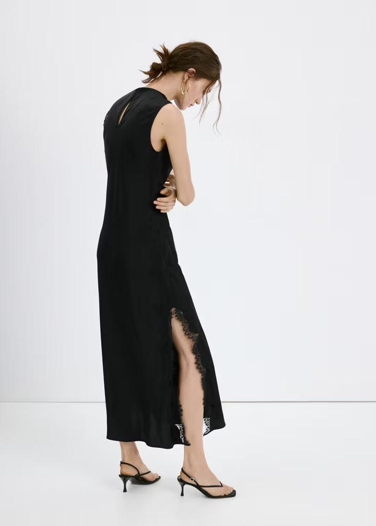 Vestido largo satinado detalles encaje