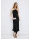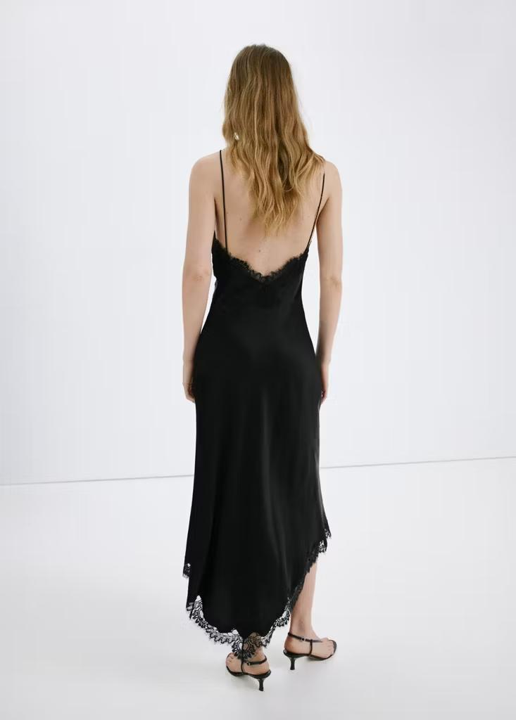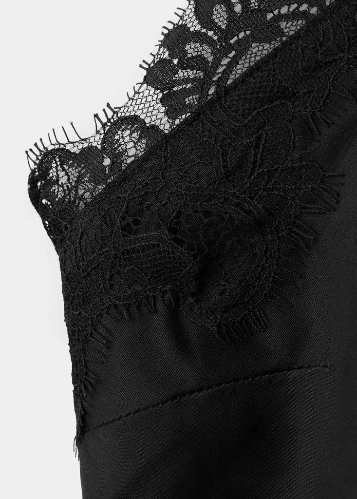 Tejido satinado. Estilo lencero. Diseño largo. Diseño entallado. Cuello halter. Panel de encaje. Sin mangas. Bajo con encaje. Sin cierre