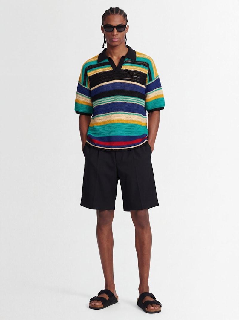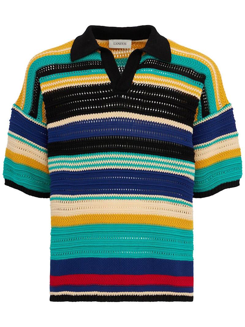 棉质条纹针织polo衫 - 多色 - 男士 - Laneus - 衬衫式衣领.