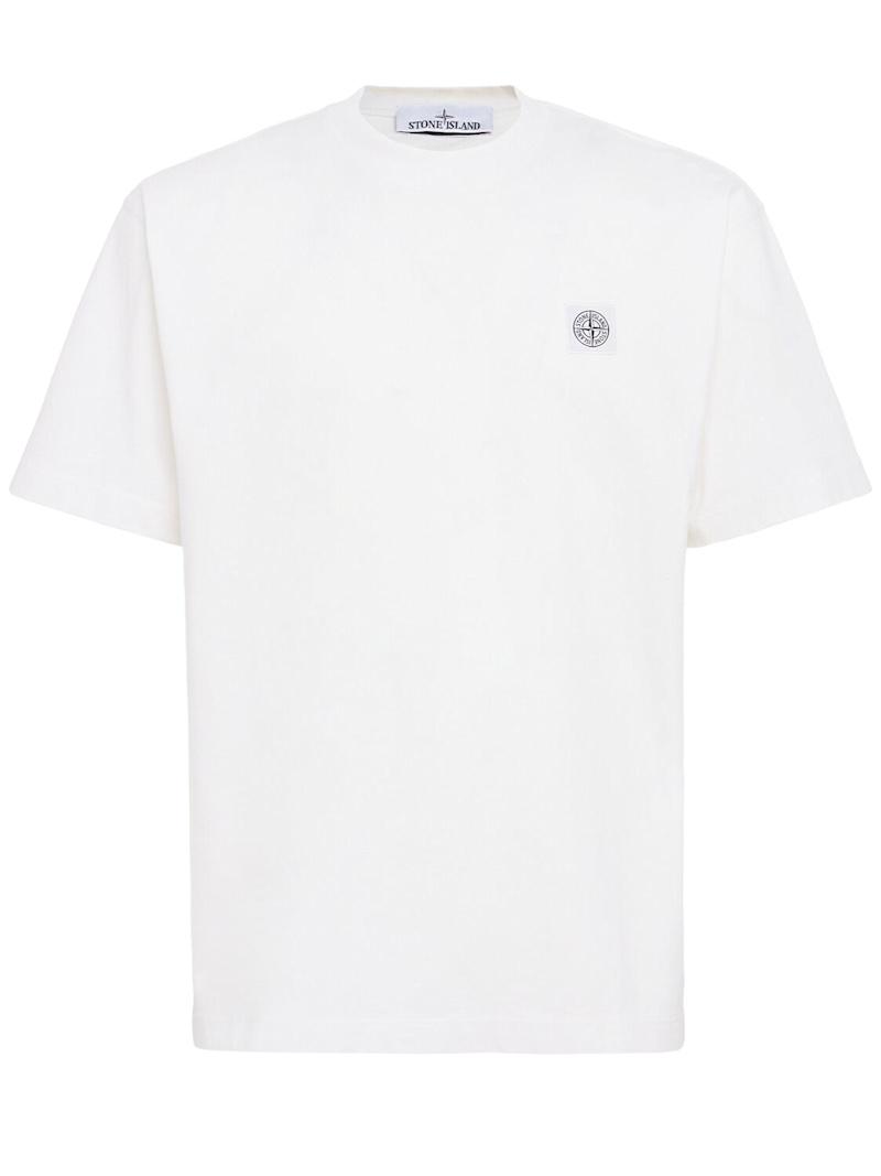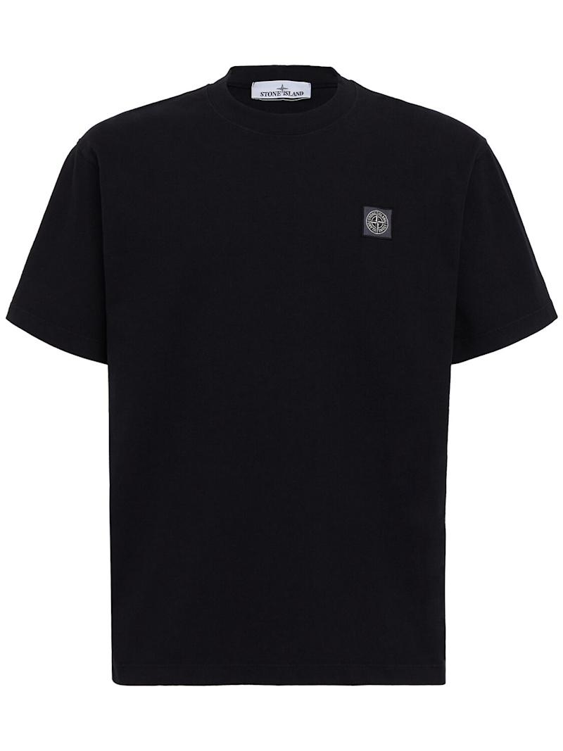 LOGO贴片棉质T恤 - 黑色 - 男士 - Stone Island - 圆领设计.