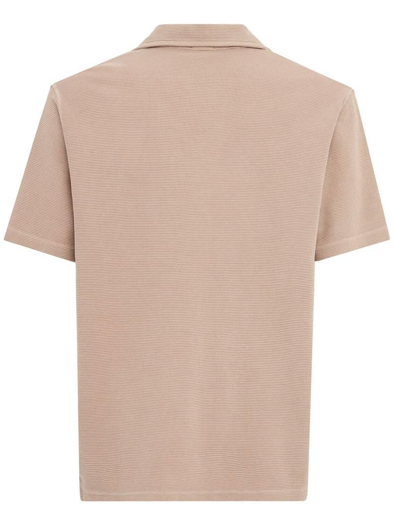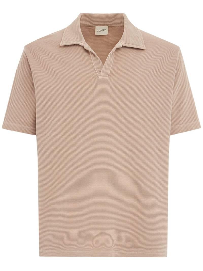 Short sleeve cotton polo shirt - 粘土色 - 男士 - Closed - Front half button placket.