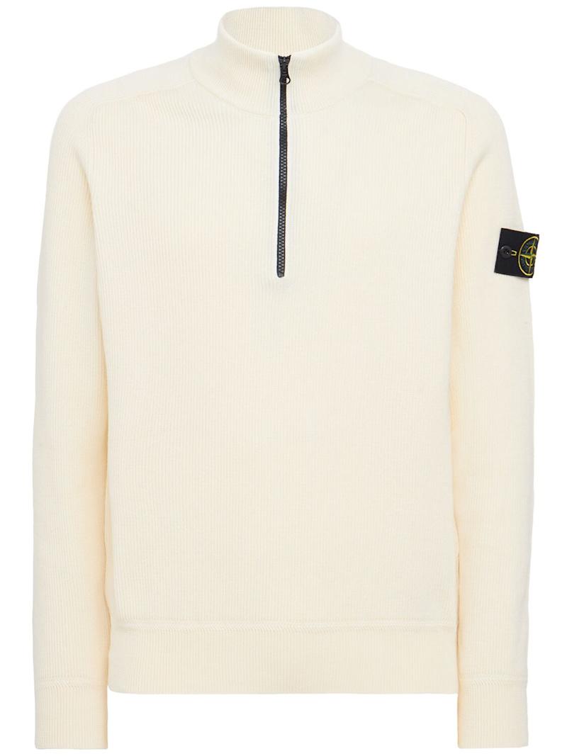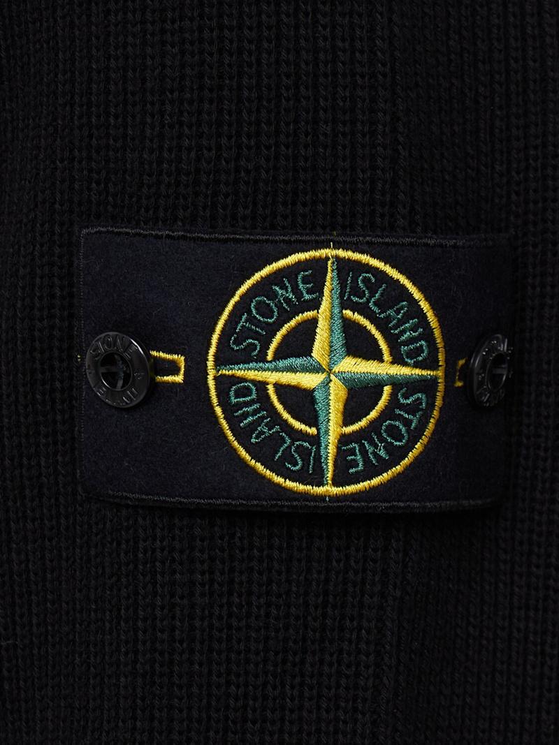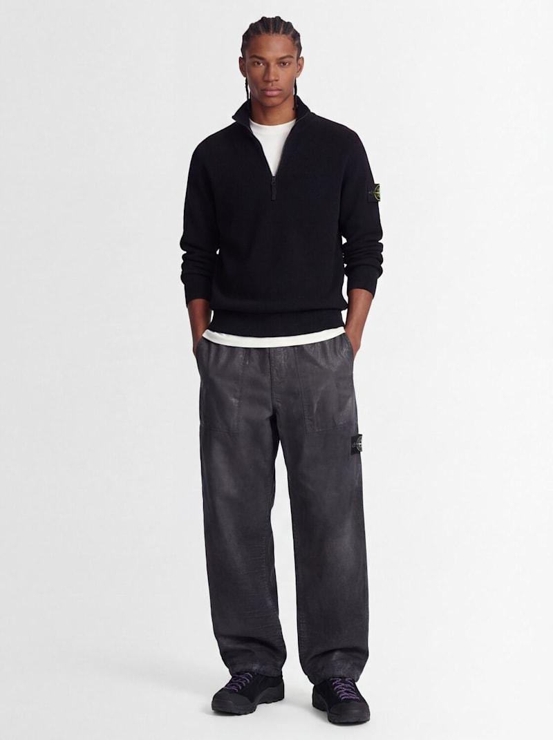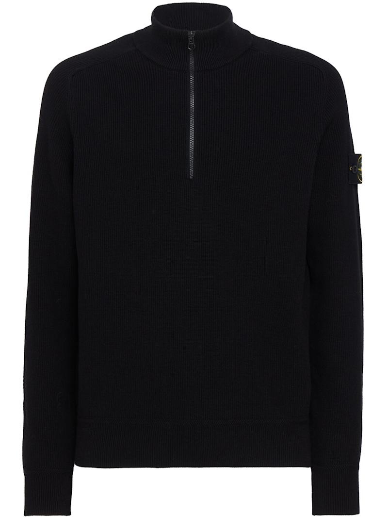 Logo棉质半拉链针织衫 - 黑色 - 男士 - Stone Island - 正面半拉链开合.