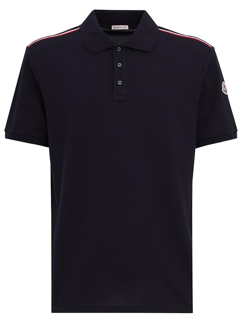 Tricolor-Trimmed cotton polo shirt - 深蓝色 - 男士 - Moncler - Crafted from cotton piquet.