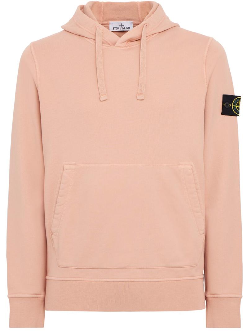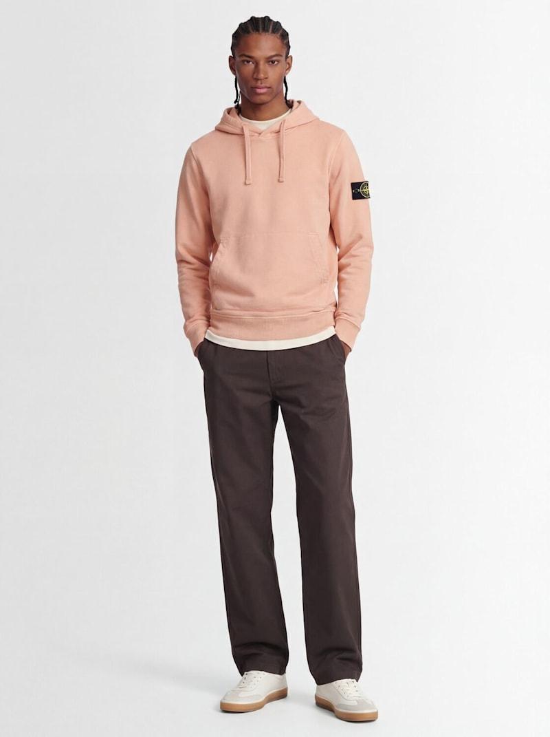 Logo棉质连帽卫衣 - Plaster Pink - 男士 - Stone Island - 不可拆卸风帽配有抽绳.