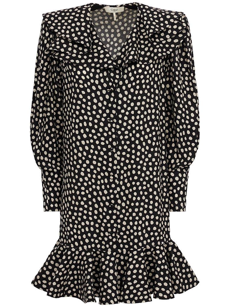Dot print silk jacquard mini dress - 黑色/米黄色 - 女士 - Chloé