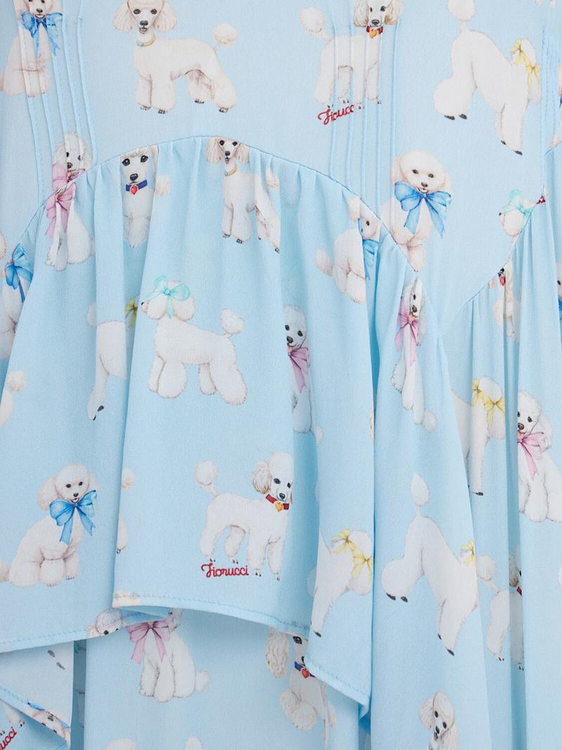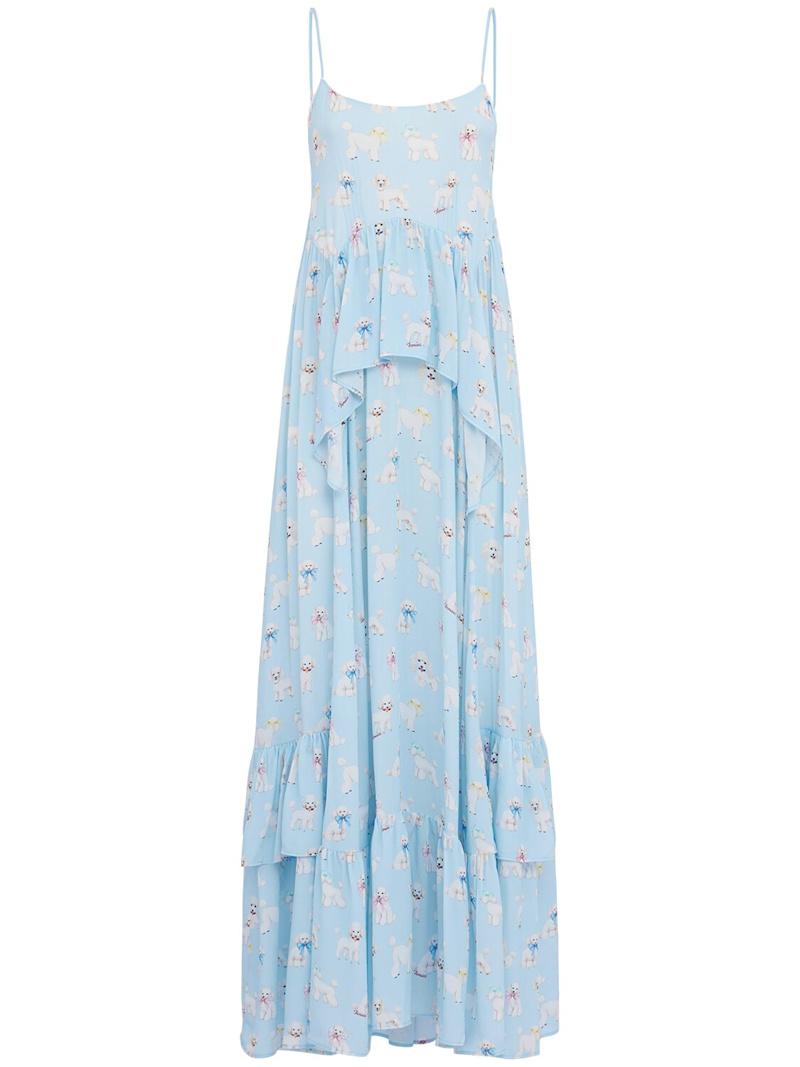 Poodle print ruffled maxi dress