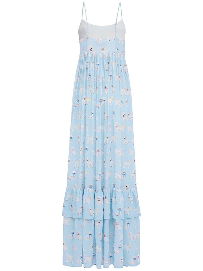 Poodle print ruffled maxi dress - 蓝色/多色 - 女士 - Fiorucci - Fixed spaghetti straps.