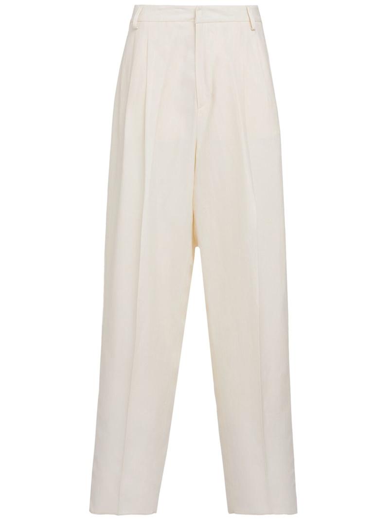 直筒裤 - Panna/Cream - 女士 - Laneus - 正面纽扣和隐藏式拉链开合.