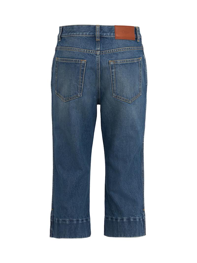 石洗棉质牛仔短裤 - 蓝色 - 女士 - Chloé - 正面纽扣和隐藏式拉链开合.
