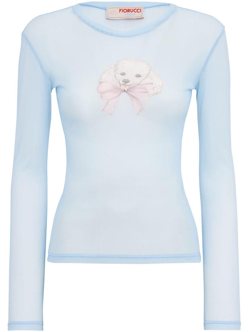 Poodle print long sleeve tulle top - 蓝色/多色 - 女士 - Fiorucci - Crewneck.