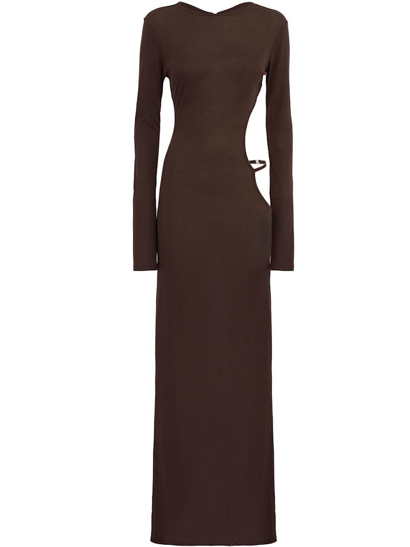 Aurelia long dress - 棕色 - 女士 - Bare - Asymmetrical back opening.