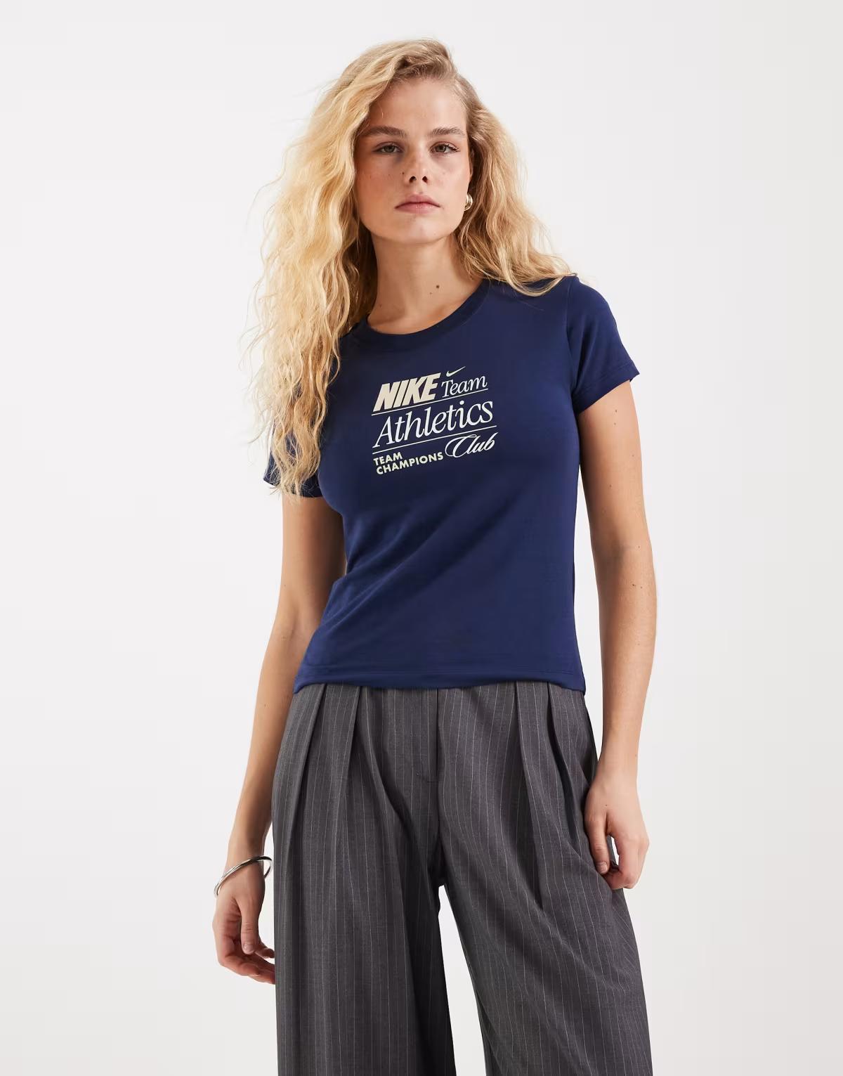Nike Chill cropped graphic t-shirt in navy