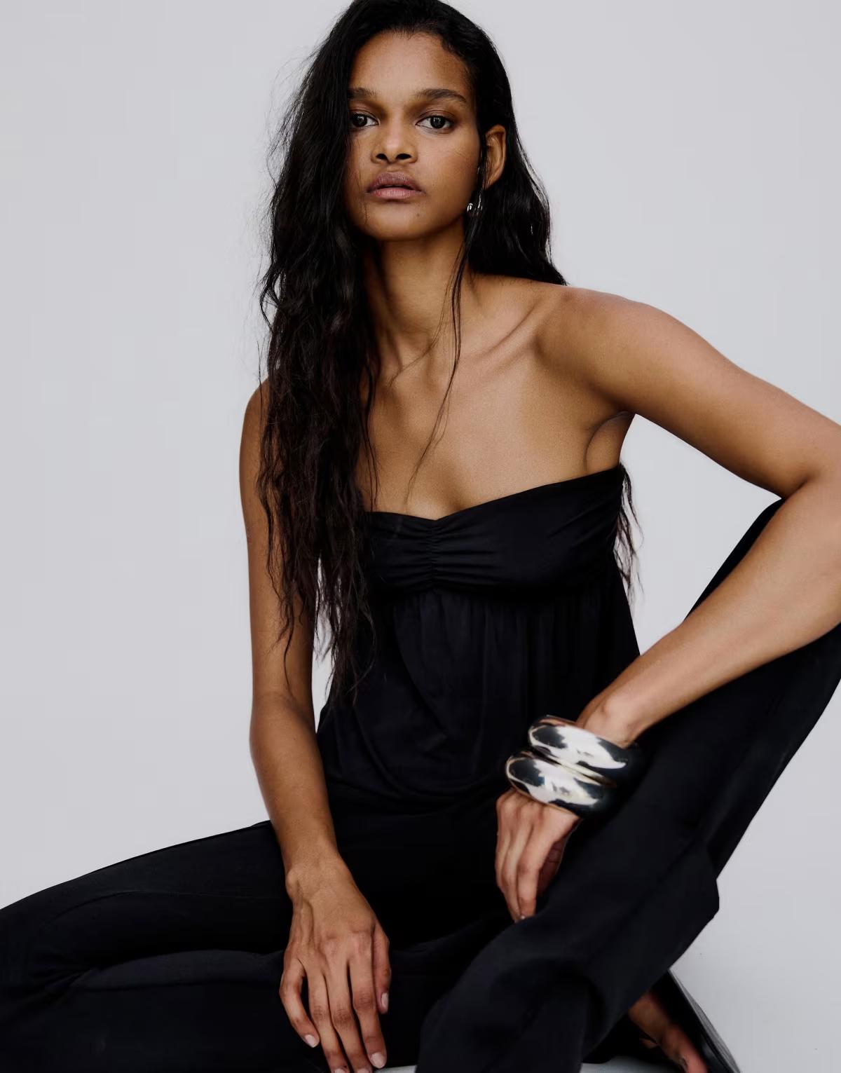 Bershka Bandeau top with knot detail at the back in black