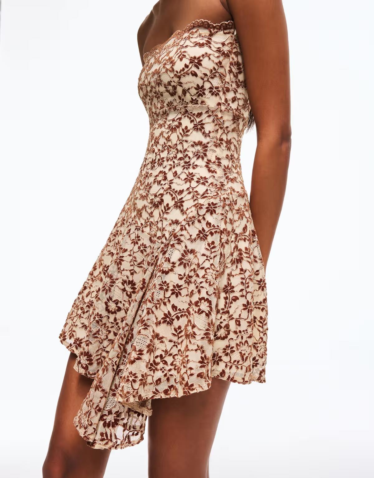 Bershka Bandeau mini dress in brown