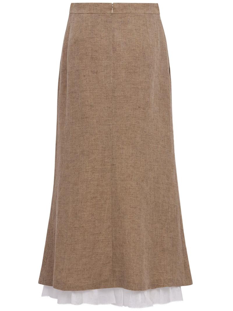 Trionfo linen midi skirt - 米黄色/白色 - 女士 - Zip closure.