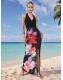 Lipsy Black Jersey Floral Print Halter Neck Maxi Dress