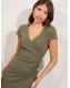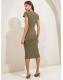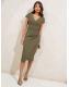 Lipsy Khaki Green Short Sleeve Ruched Asymetric Detail Midi Dress
