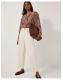Like you, she's versatile. Adorned with watercolour-inspired smudges reminiscent of animal spots, this blouse is an artful addition to your wardrobe, fit for the boardroom and brunch. Cut from slightly sheer fabric, it's finished with strips of ruffles either side of the front button fastenings. Pink