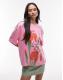 Floral graphic and text print on front