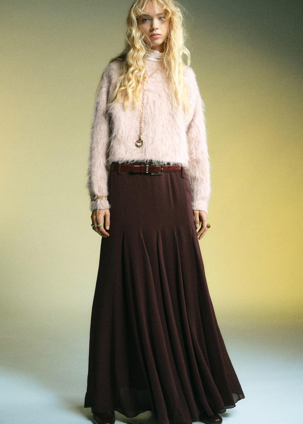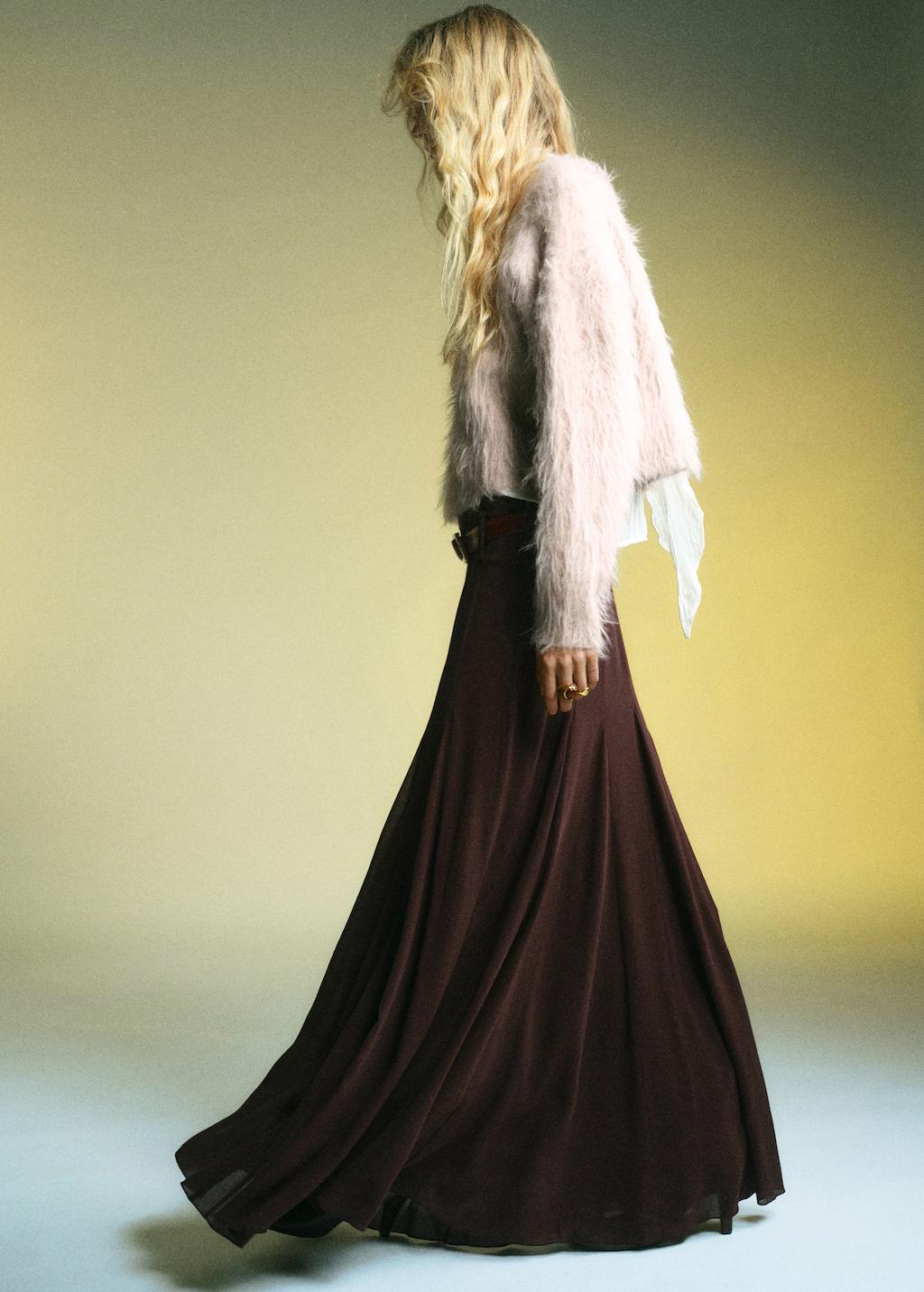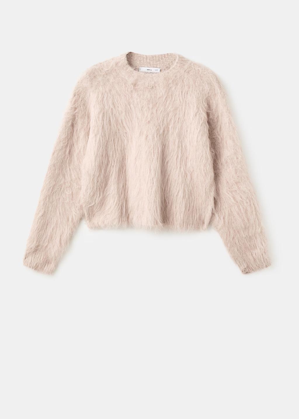 Con efecto pelo, este diseño recto presenta un cuello redondo y manga larga