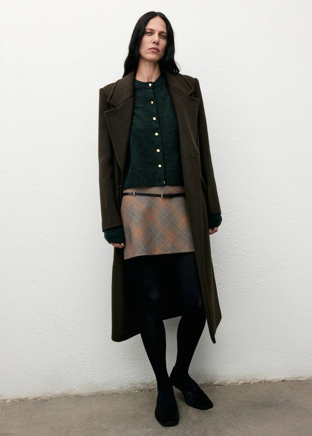 Confeccionado en tejido de punto medio, este diseño recto presenta un cuello caja y manga larga. El cierre delantero con botones añade funcionalidad y estilo