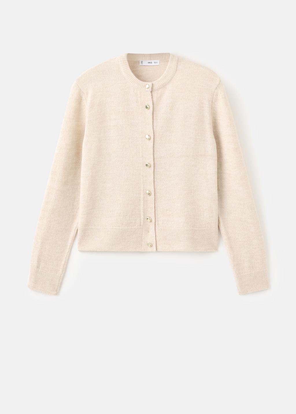Confeccionado en tejido de punto medio, este diseño recto presenta un cuello caja y manga larga. El cierre delantero con botones añade funcionalidad y estilo