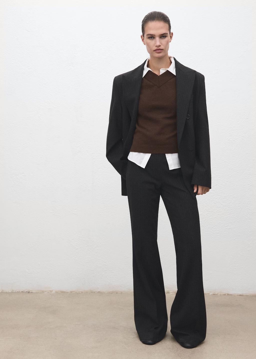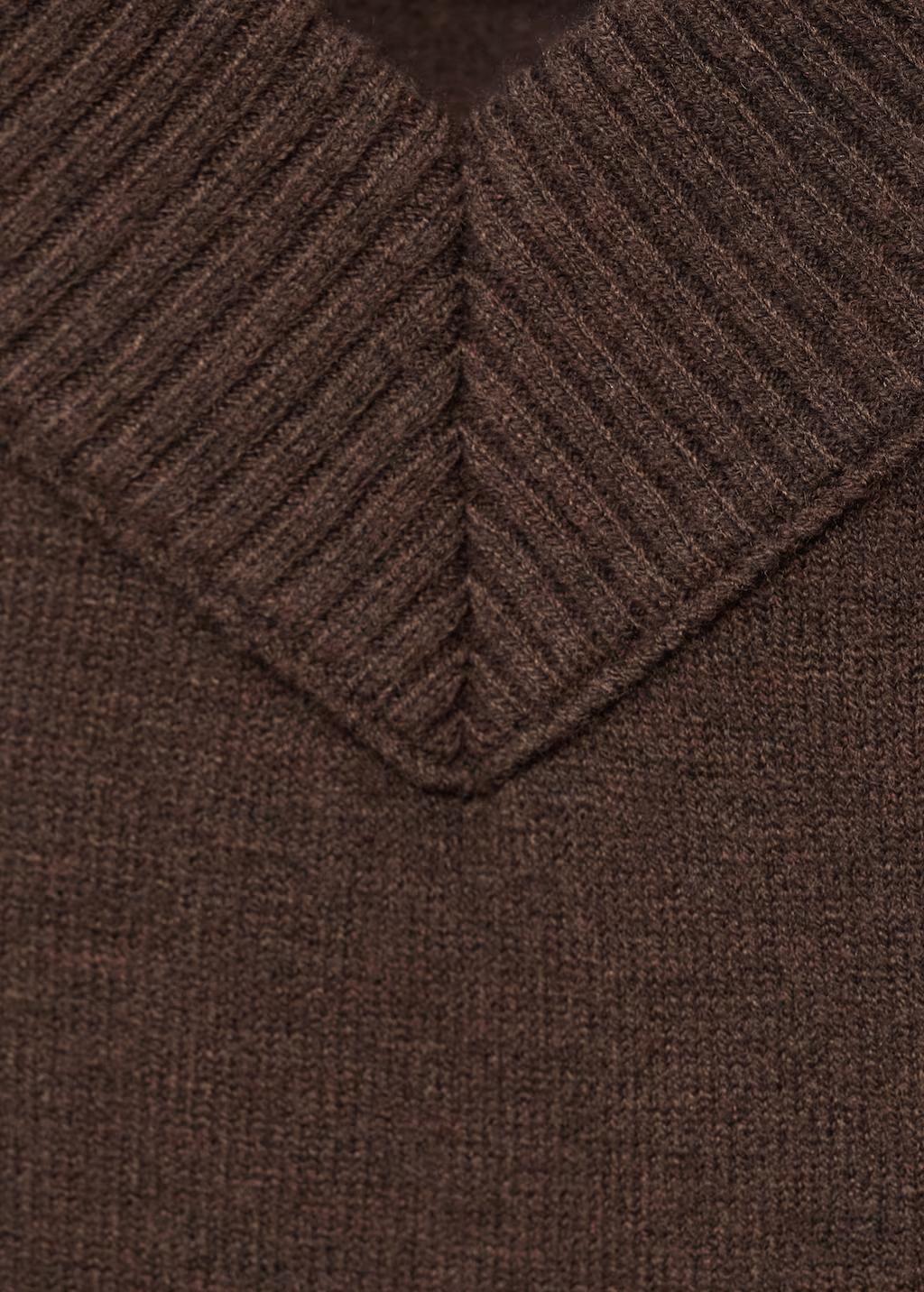 Confeccionado en tejido de punto medio con una mezcla de algodón, seda y lana, , este diseño recto presenta un cuello pico y manga corta. Sin cierre