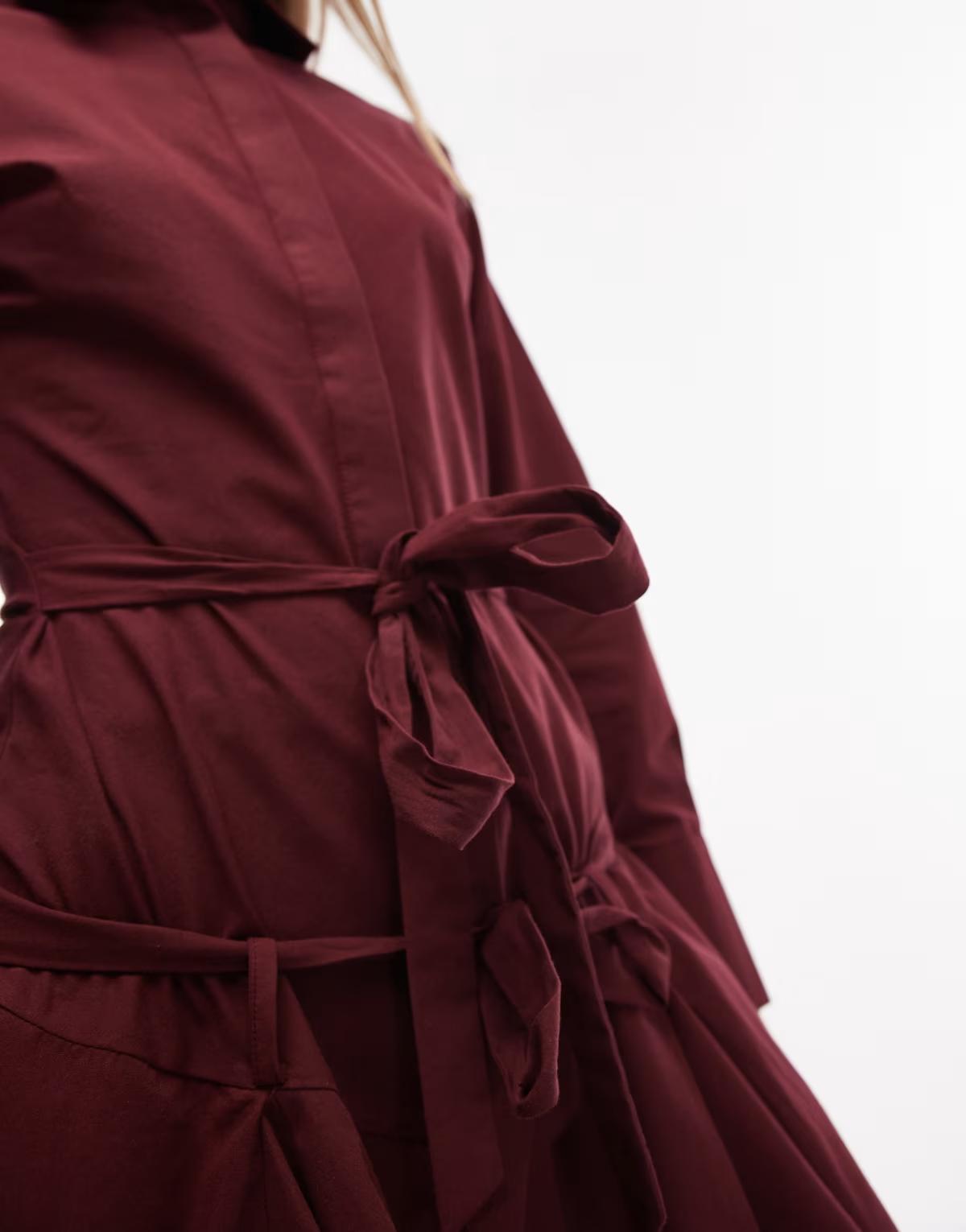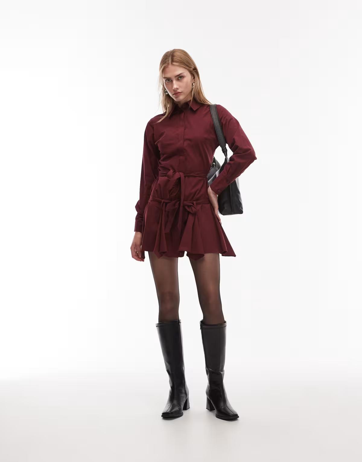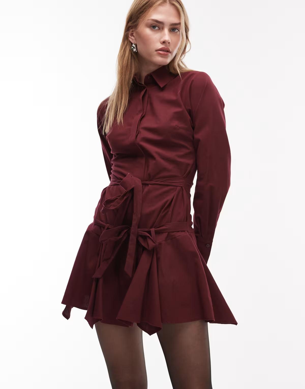 ASOS DESIGN shirt mini dress with tie waist detail in berry