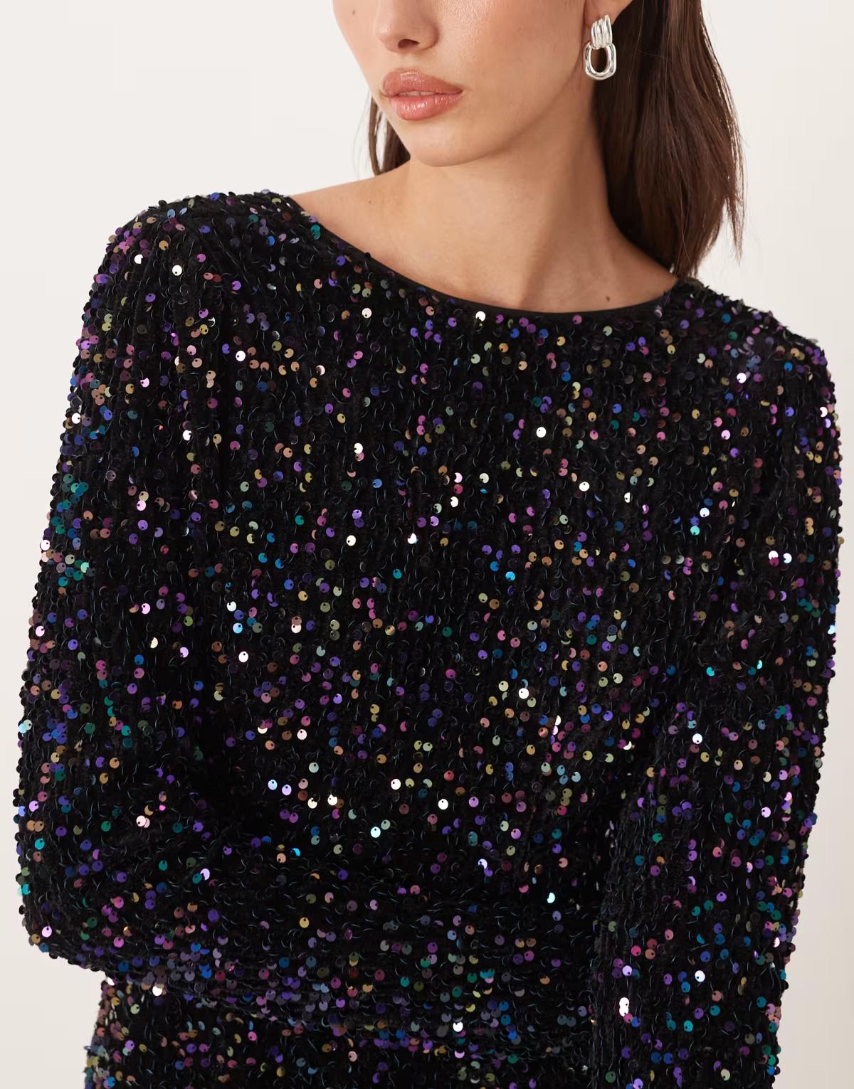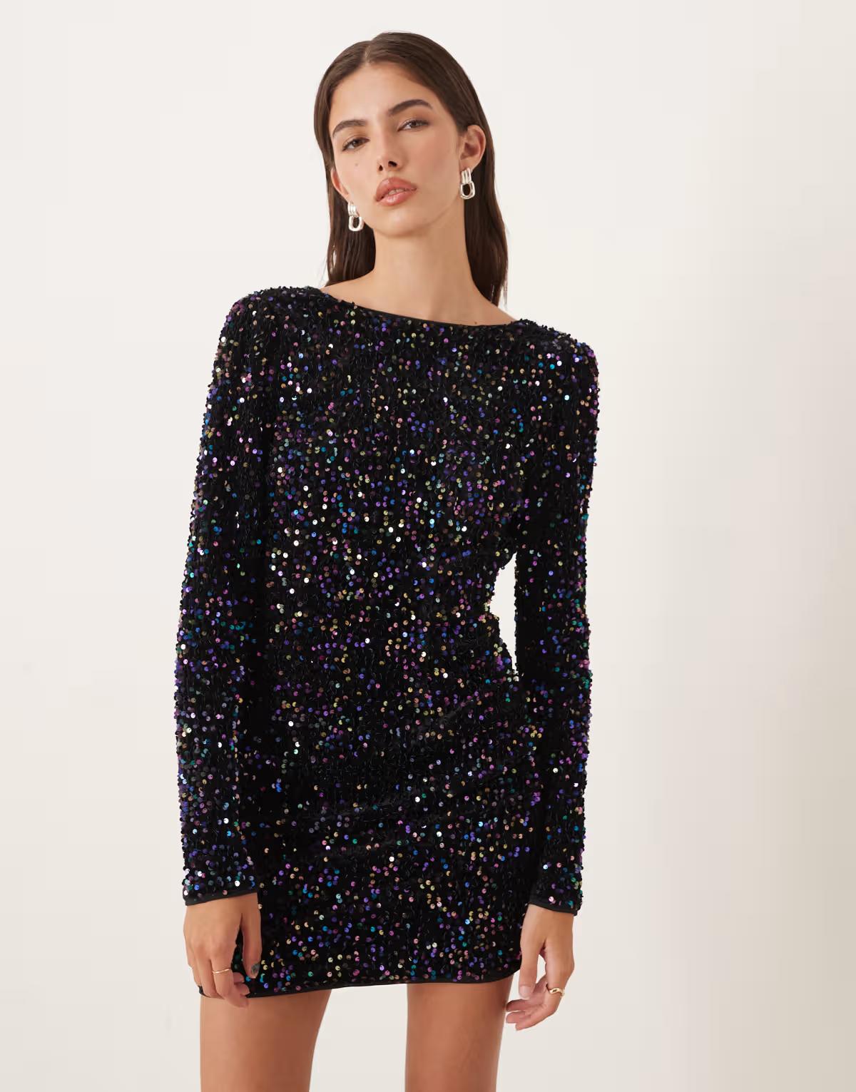 Lovedrobe Embellished v-back velvet bodycon mini dress in black