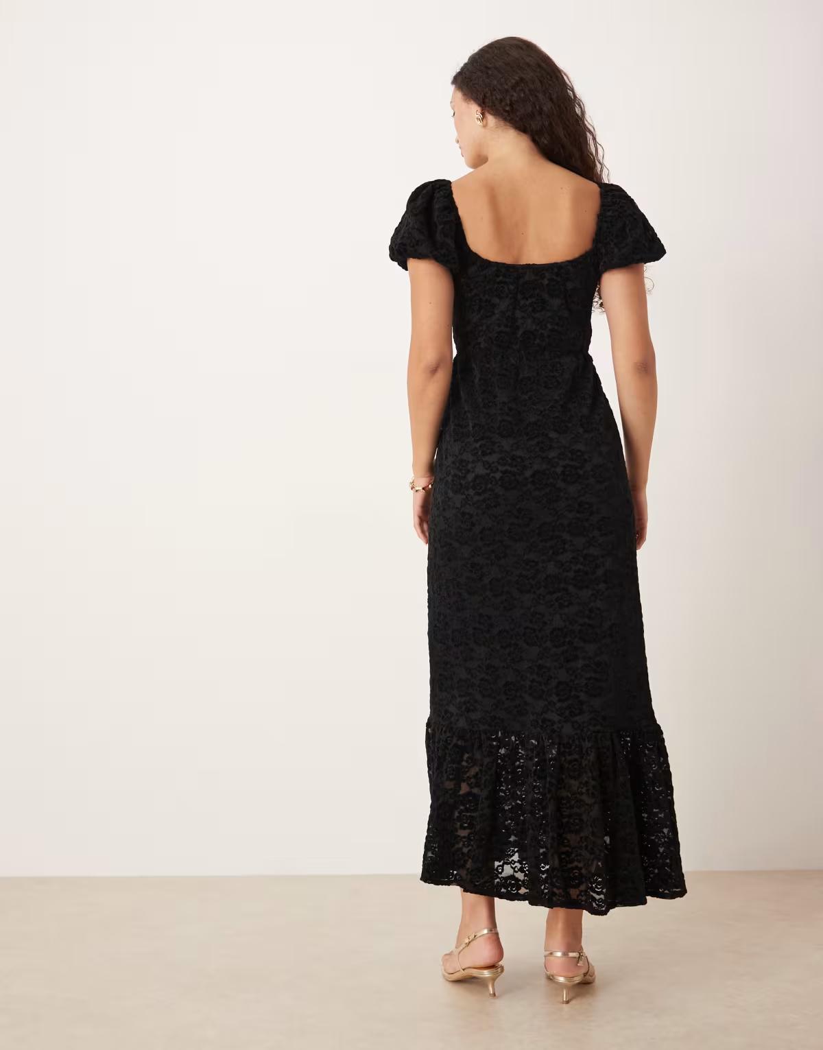 Lovedrobe Floral velvet square neck midaxi dress in black