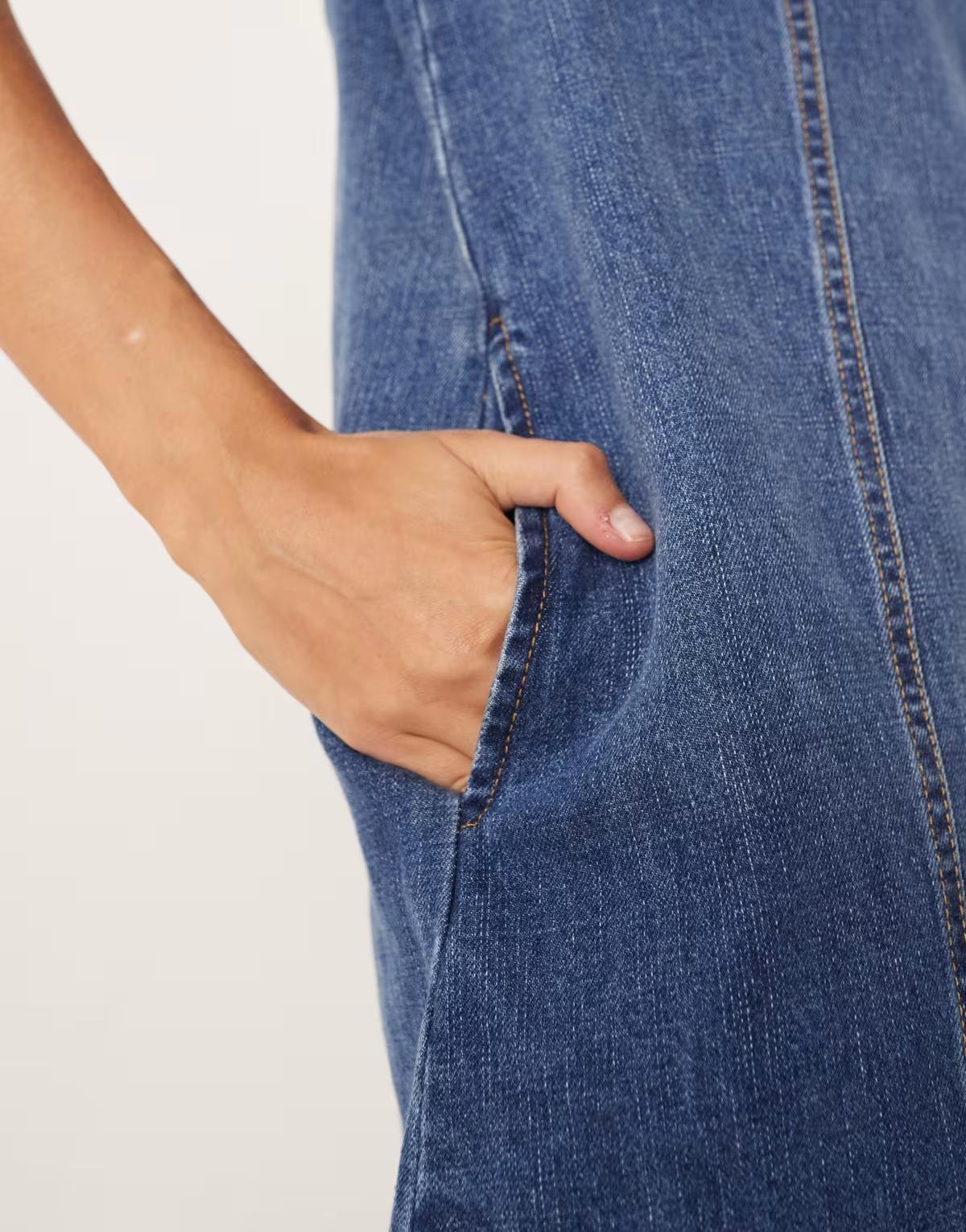 Machine wash according to instructions on care labelNon-stretch denim: mid-blue wash