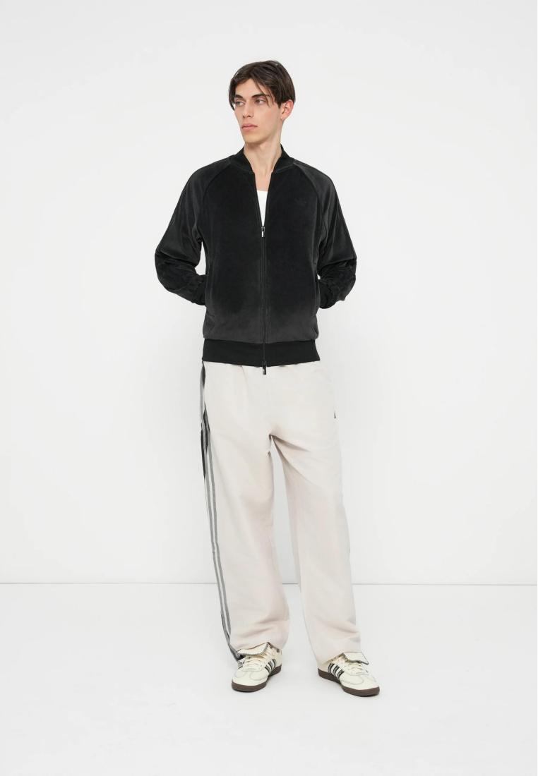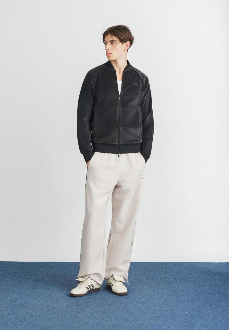 Small label flag at chest heightCollar: Standing collarFastening: ZipPockets: Inseam pocketsPattern: PlainDetails: Elasticated waist, two-way zip