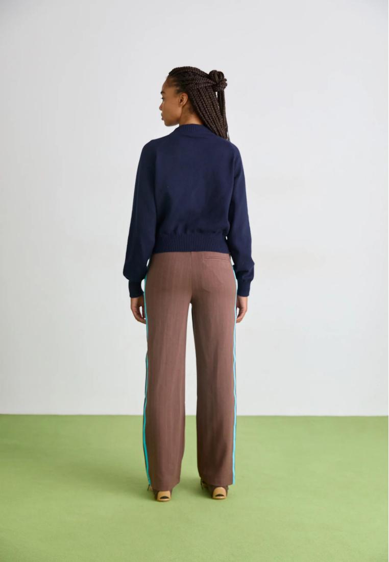 Waistband: ElasticatedRise: HighPockets: Side pockets, back pocketPattern: PinstripedDetails: Elasticated waist