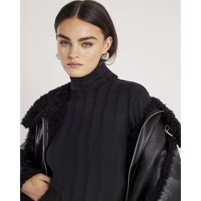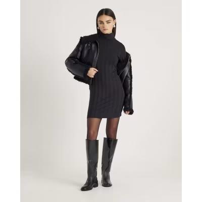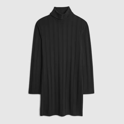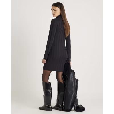 Black Long Sleeve Cosy Wide Ribbed Mini Dress