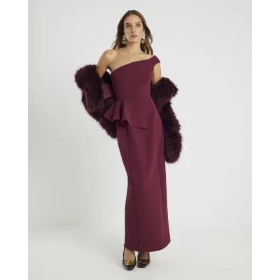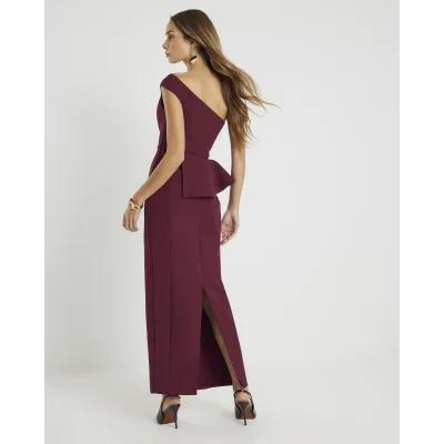 Red Premium Asymmetric Frill Maxi Dress