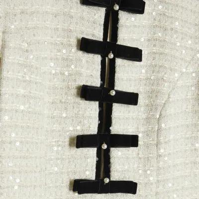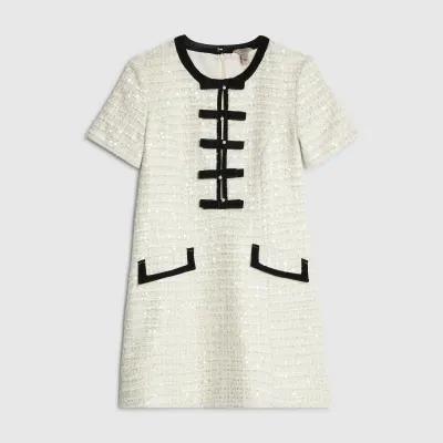 Cream Boucle Bow Front Mini Dress