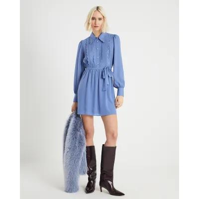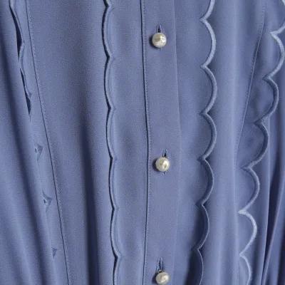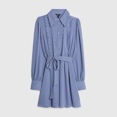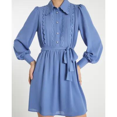 Blue Long Sleeve Scallop Trim Shirt Dress
