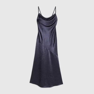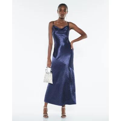 Navy Satin Diamante Detail Slip Midi dress